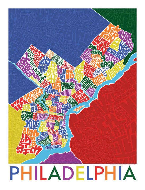 Philadelphia Neighborhood Map 18″ x 24″ Multi Color Screenprint